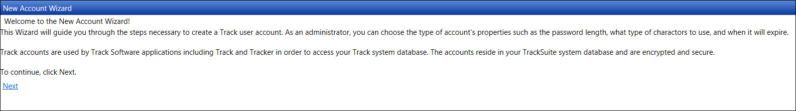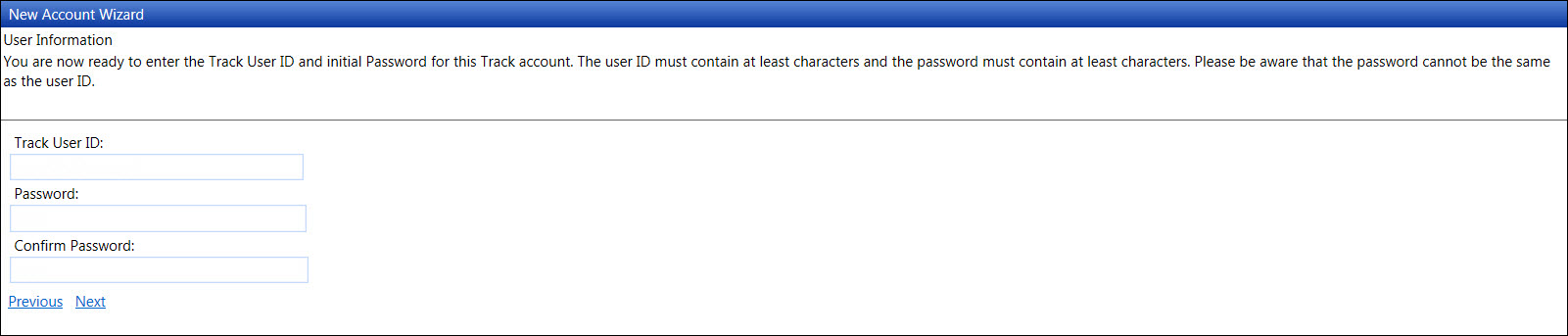 The enterprise administrator will use this user ID to log in to the Track Admin application. Enter a login ID into the Track User ID text box.